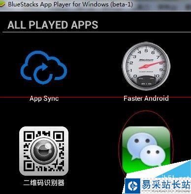 5、安裝之后,在BlueStacks顯示微信圖標。