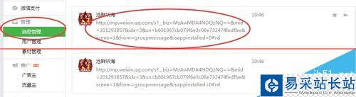 4、在自己的公眾平臺(tái)后臺(tái)(mp.weixin.qq.com)的消息管理中就會(huì)有剛才的鏈接消息。