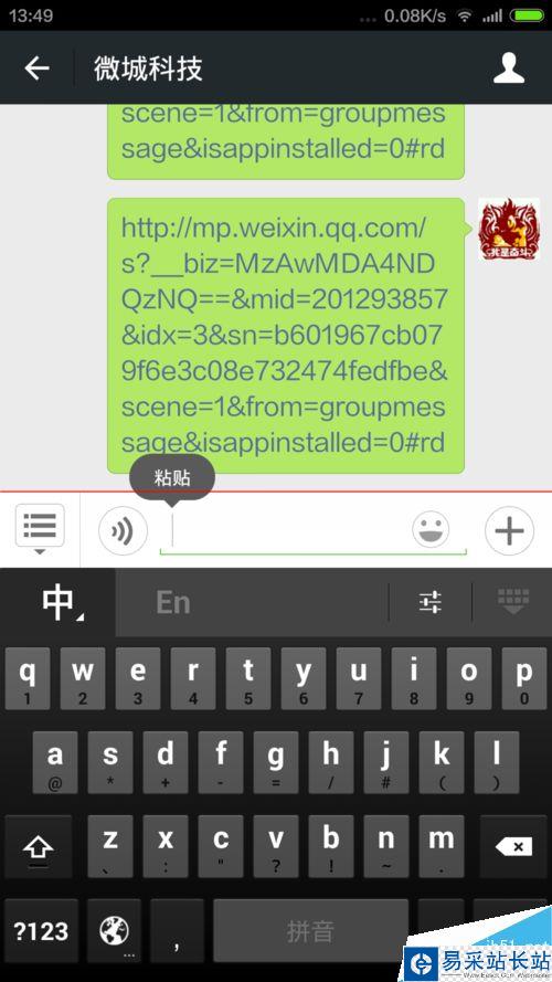 3、既然是要放在自己的微信公眾平臺(tái)上,肯定已有了公眾號(hào),將復(fù)制的鏈接貼在自己的公眾平臺(tái)的對(duì)話框中,發(fā)送給平臺(tái)