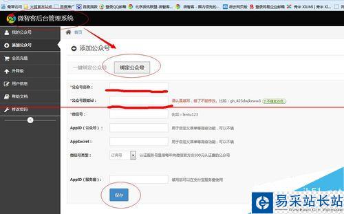 2、注冊登錄你要綁定的第三方服務商進行公眾號綁定