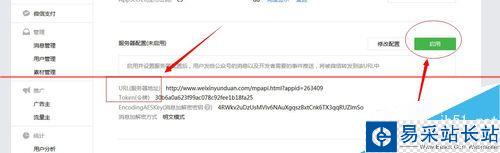 4、到微信公眾平臺,在“高級設置”里選擇開發者模式----成為開發者。填寫互聯在線提供的url和token,還有開發者憑據的Appid和AppSecret。與公眾號進行綁定。