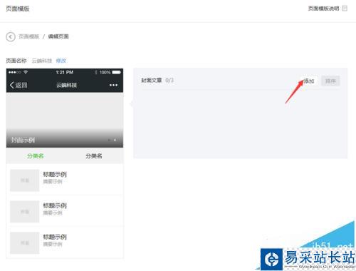3、之后點(diǎn)擊添加頁(yè)面模板進(jìn)入以下列表(如圖)一共有兩種展現(xiàn)模式如圖所示和手機(jī)端展現(xiàn)無(wú)差異。如果要制作一個(gè)模板的話我們就要選擇一個(gè)類型。例如:封面模板。出現(xiàn)添加界面以后如圖可以自行添加已經(jīng)發(fā)布的圖文或編輯好微發(fā)布的圖文。接下來(lái)一次類推都是同樣的方法,想添加模板哪個(gè)版塊的內(nèi)容,就直接點(diǎn)擊版塊,然后點(diǎn)擊添加即可。