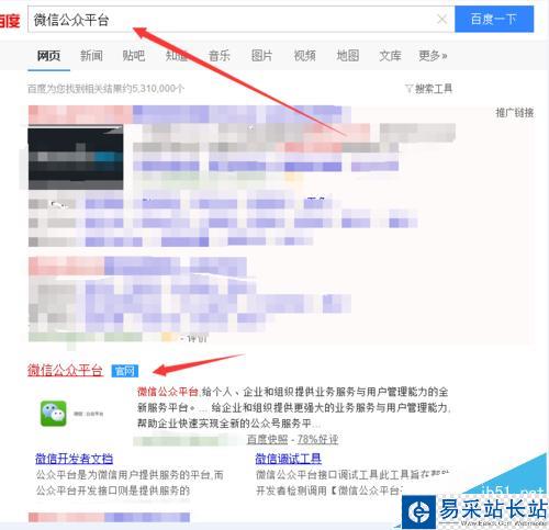 1、首先搜索微信公眾平臺(tái),點(diǎn)擊進(jìn)入并登陸公眾賬號(hào)密碼等信息;認(rèn)準(zhǔn)官網(wǎng)字樣(如圖)一個(gè)地址。