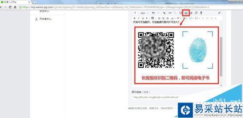 2、登陸微信公眾平臺,素材管理-新建圖文消息,在圖文信息描述中加入二維碼,并且添加手機版微雜志鏈接作為原文鏈接;