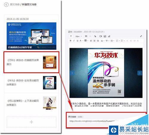 方法一: 發布圖文消息+原文鏈接