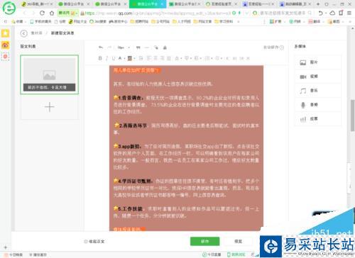 微信公眾號制作好的文章素材保存失敗無法發送該怎么辦?