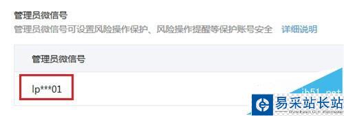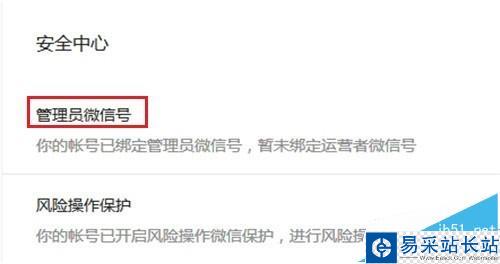3、在“安全中心“組中,選擇”管理員微信號“,點擊右邊的“詳情”