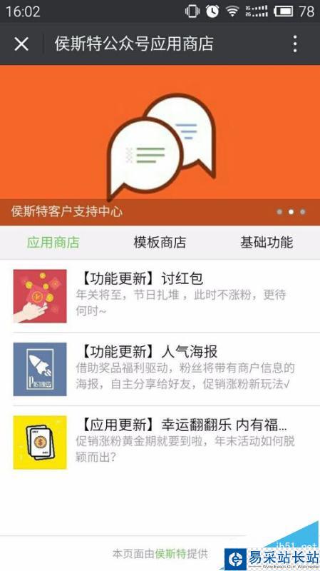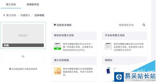 與公眾平臺的頁面模板僅可選擇圖文消息、封面圖自動讀取有所不同: