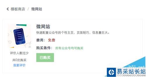 3、選擇『微網站』進入購買頁面,完成購買。(僅完成購買流程,該功能免費,不需要充值或付費)