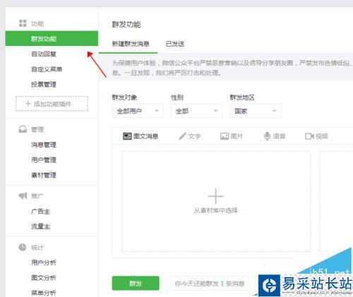 6、接著返回到群發(fā)功能界面