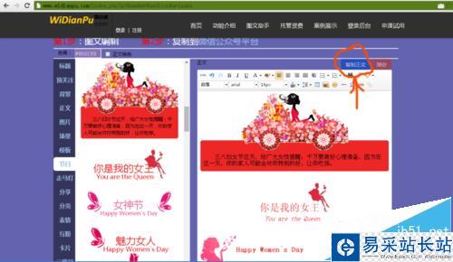 3、圖文編輯好后, 點右上的“復制正文”, 再點擊第一步的圖文正文,按鍵 ctrl+v ,ok了, 大功告成, 一篇漂亮的圖文就出來了!