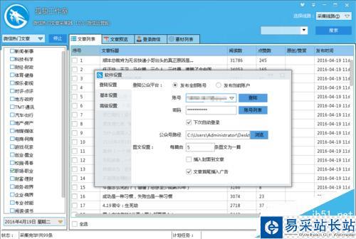 2、助手可以分類,關(guān)鍵詞,自定義采集方式,可以一鍵同步公眾后臺(tái)。