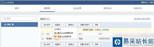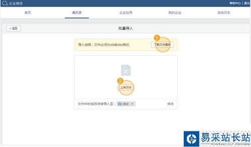 3、編輯完文件后,上傳文件,點擊導入即可批量將成員導入到通訊錄中。成員通過驗證手機或郵箱后即可登錄。