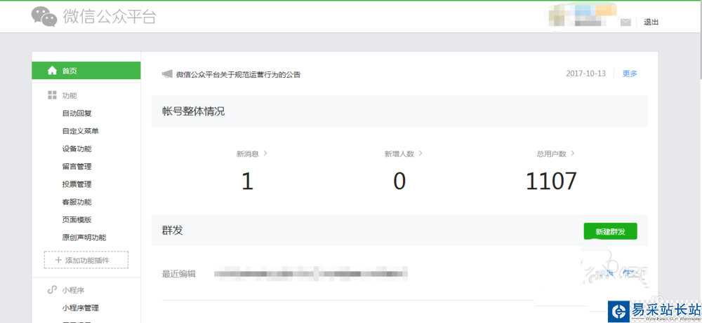 2、這時候我們就進入到微信公眾號后臺了,下圖是微信公眾號后臺首頁,
