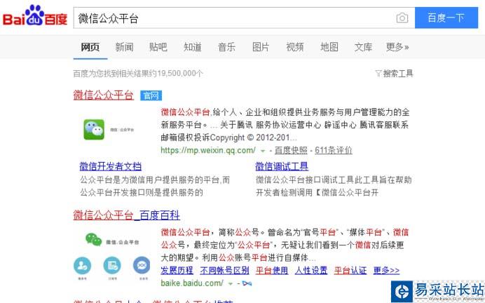1、打開百度瀏覽器,輸入微信公眾平臺,選擇第一個點擊進去。