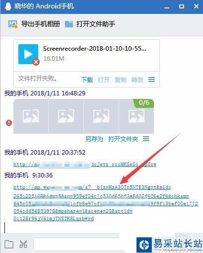 5、這時在電腦上就會彈出我的手機對話框,點擊收到的網(wǎng)址即可。