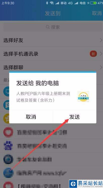 4、這時會彈出發(fā)送給我的電腦窗口,點擊發(fā)送按鈕。