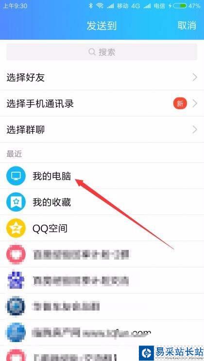 3、在打開的發(fā)送到菜單中找到“我的電腦”一項,點擊我的電腦菜單項。