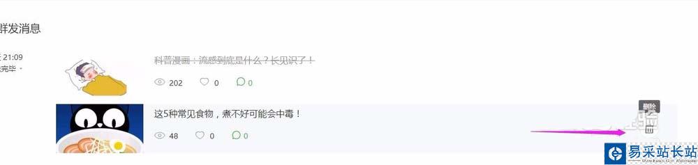 6、刪除之后,這個文章會有一個橫線劃出,文字也會變成灰色,表示刪除成功了