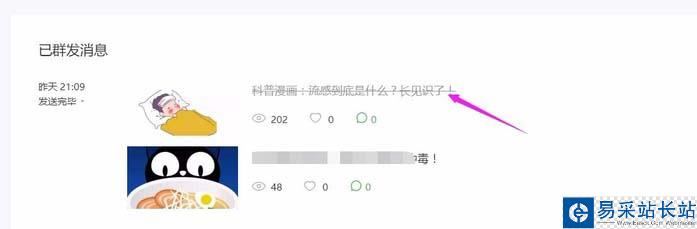 5、點擊左上角的微信公眾號,之后下拉找到已群發(fā)消息,之后點擊右側(cè)的刪除圖標(biāo)將其刪除
