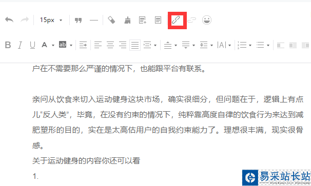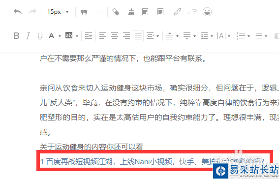 3、在下面添加關(guān)于“XXX的內(nèi)容你還可以看”,如果圖文內(nèi)容過多的話,可以用12345來區(qū)分。在空白區(qū)域,點擊編輯器右上角的鏈接圖標(biāo)。