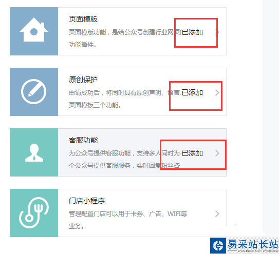 3、在右面 有”已添加“ 三個字的代表,現在公眾平臺已經添加了這個功能。沒有”已添加“的可以手動 添加