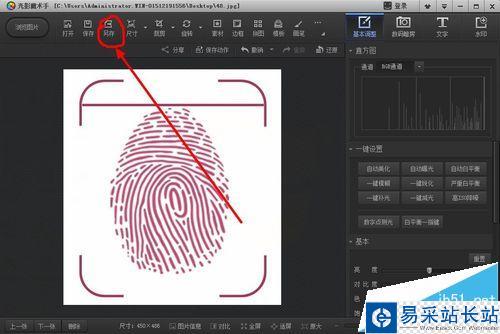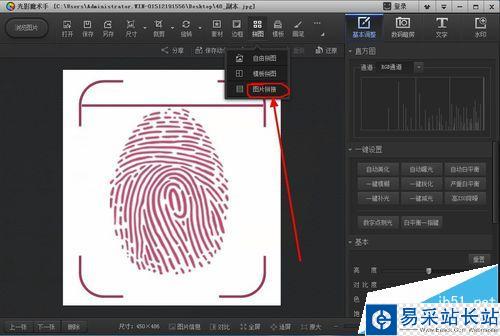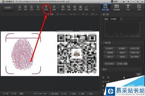 2、點擊上面的裁剪功能,然后把指紋這部分裁剪下來