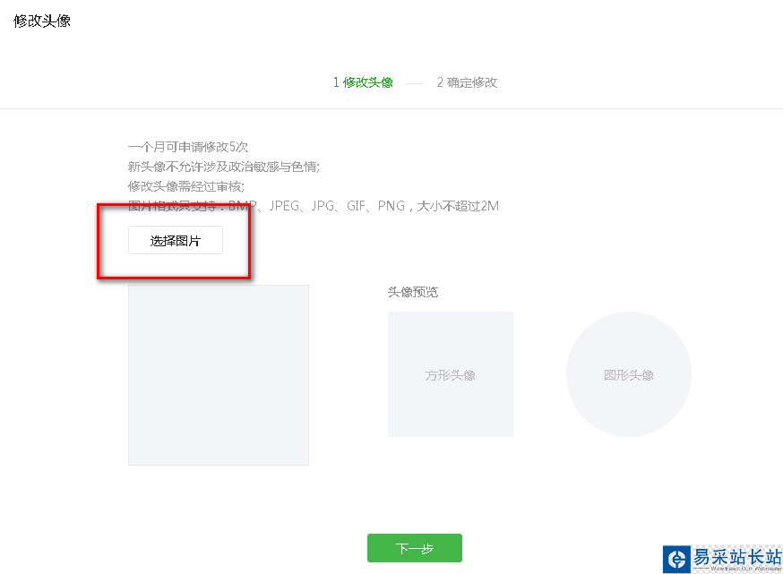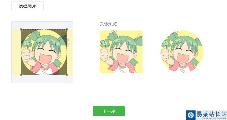 7、圖片上傳完成后進行范圍的框選,確認正方形和圓形的頭像。