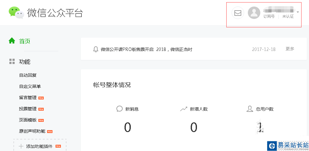 1、打開一個沒有頭像的公眾號,下面就給這個公眾號增加頭像。