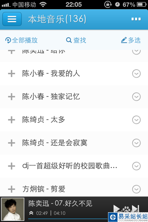 2、進入到本地音樂中,就可以看到你手機上面的所有音樂了,然后找到你想要分享的音樂,比如下圖,我就選擇了一首“獨家記憶”點擊播放
