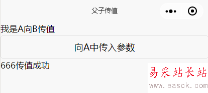 //子組件B jsComponent({ //B在這里接收與data類似可以直接在wxml上用 properties: { paramAtoB: { type: String,//類型 value: 'default value'//默認值 } }, data: { }, methods: { //觸發change事件向A傳值 change: function () { this.triggerEvent('myevent', { paramBtoA: "666傳值成功" }); } }})//子組件B json