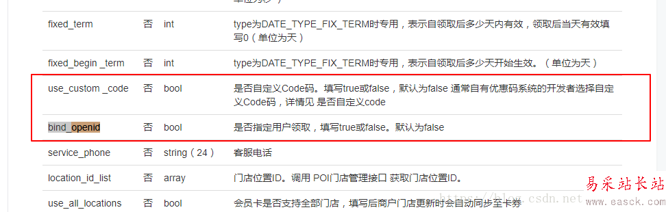 創(chuàng)建的時候要特別注意”use_custom_code”: false,”bind_openid“:false兩個字段