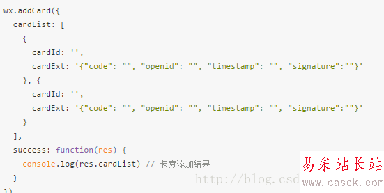 拿到這些數據之后,看下圖,是不是跟小程序官方文檔的一樣的,這樣就可以 打開卡券了