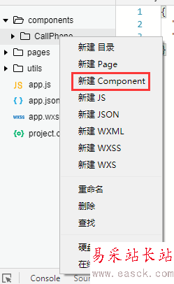 里面可以用右鍵自動創(chuàng)建的方式,新建一個Component組件,例如: