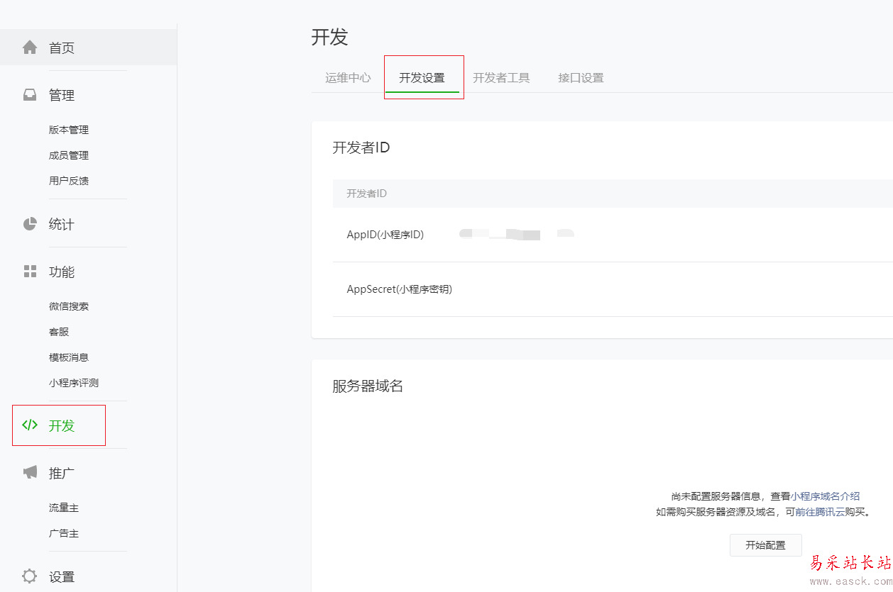 在完成注冊(cè)后,切換到開(kāi)發(fā)->開(kāi)發(fā)設(shè)置,可以查看開(kāi)發(fā)者ID。