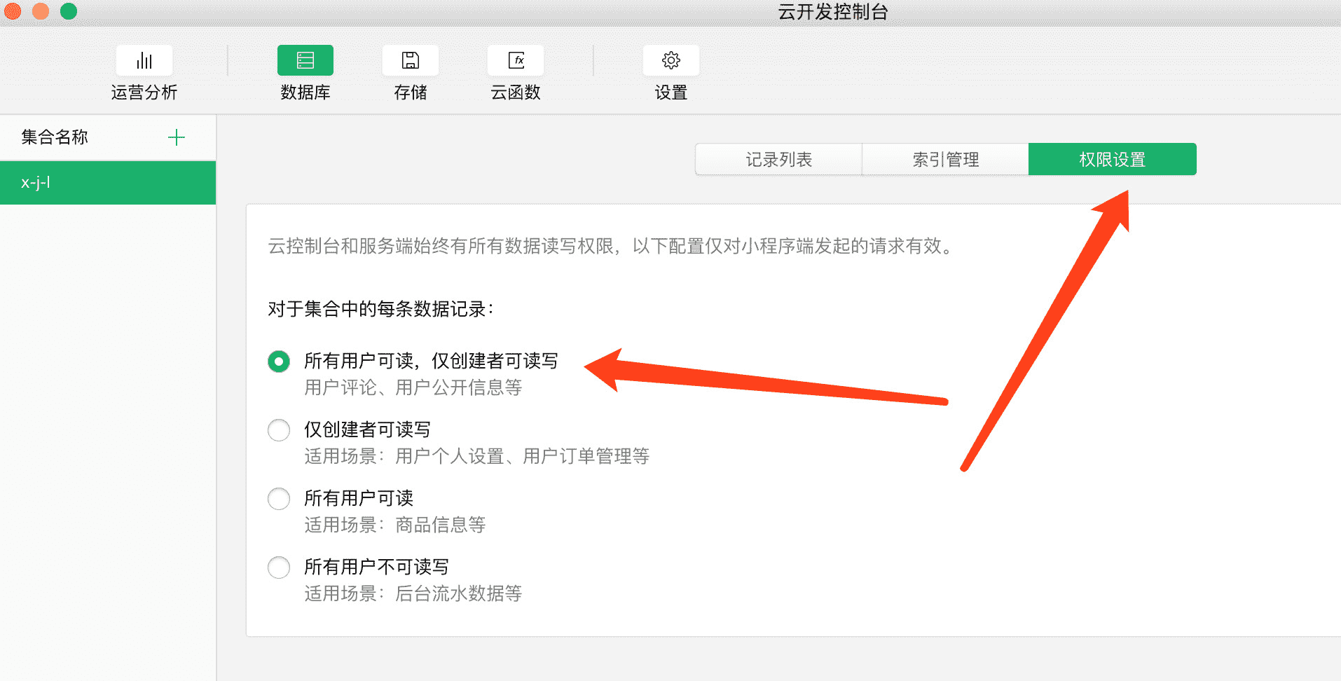 造成這種錯(cuò)誤的主要原因是因?yàn)椋阈薷牡倪@條數(shù)據(jù)不是你創(chuàng)建的。我們直接操作云數(shù)據(jù)庫時(shí),在數(shù)據(jù)庫里設(shè)置里如下權(quán)限。