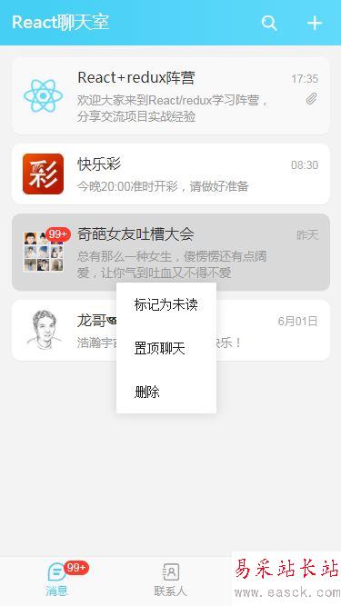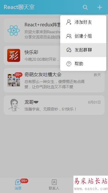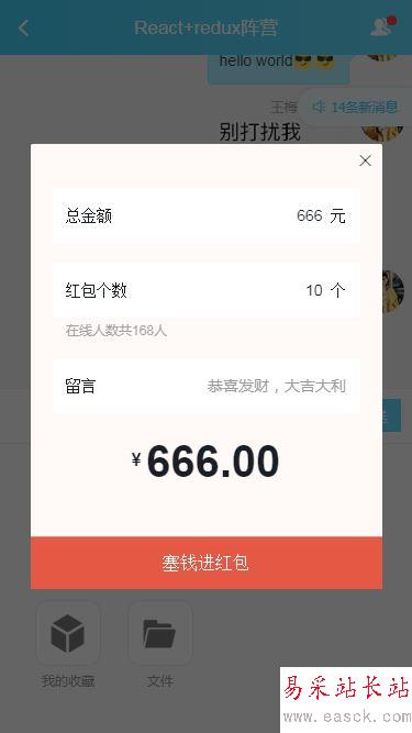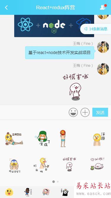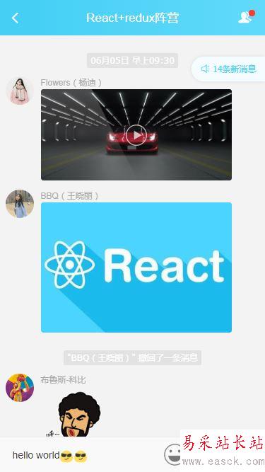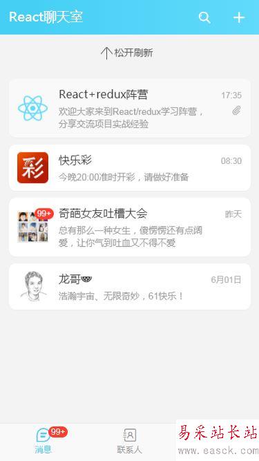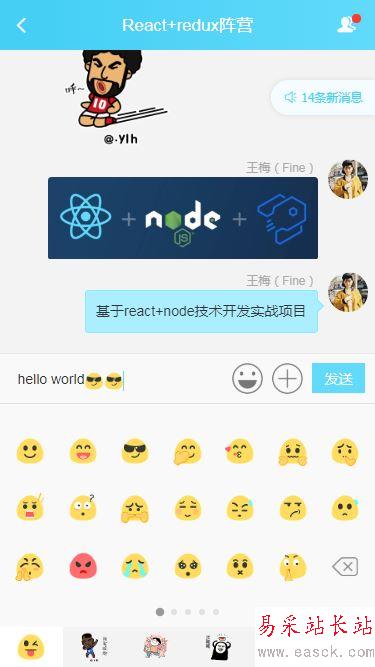 基于react+react-dom+react-router-dom+redux+react-redux+webpack2.0+react-photoswipe+swiper等技術混合開發的手機端仿微信界面聊天室——reactChatRoom,實現了聊天記錄下拉刷新、發送消息、表情(動圖),圖片、視頻預覽,打賞、紅包等功能。