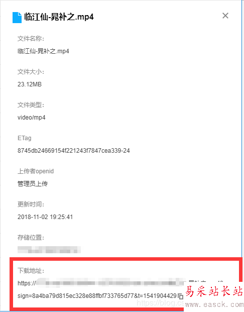tempFileURL是我們在云存儲里面保存的數據,然后下面的鏈接就是我們之前所說的詳情里面的下載地址如下所示