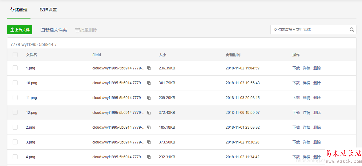 1、打開我們的云開發(fā)然后點(diǎn)擊存儲(chǔ)管理如下所示