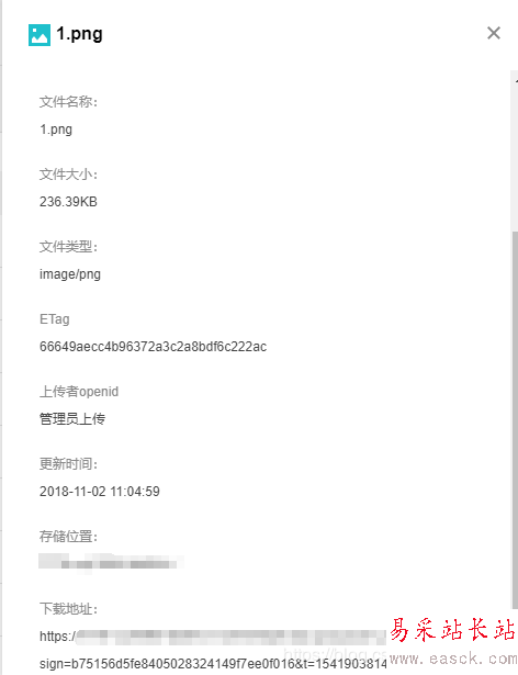 這里顯示我們文件的下載地址存儲(chǔ)位置,這就是我們需要的東西,下一節(jié)我為大家介紹下怎么將云存儲(chǔ)的數(shù)據(jù)存入到云數(shù)據(jù)庫里面。