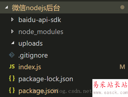 // 錄音對象const recorderManager = wx.getRecorderManager();function sendRecord(src) { var obj = { // 已經在花生殼中映射到本地端口-3001 url: "http://xxx:34306/post", filePath: src, name: "fffile", header: { 'Content-Type': 'application/json' }, success: function (result) { var data = JSON.parse(result.data); // msg 為最終語音識別的字符串 var msg = data.result; // 獲取當前頁面對象 var page = getCurrentPages()[0]; page.setData({ msg: msg }); }, fail: function (err) { console.log(err); } }; wx.uploadFile(obj)}// 結束錄音的時候觸發 recorderManager.onStop((res) => { // 獲取文件路徑-提交到后臺-后臺發送到百度 sendRecord(res.tempFilePath);})recorderManager.onError((res) => { console.log("error", res);});Page({ /** * 頁面的初始數據 */ data: { msg: "" }, // 按下按鈕的時候觸發 startrecorderHandel() { // 開始錄音 recorderManager.start({ }); }, // 松開按鈕的時候觸發-發送錄音 sendrecorderHandel() { // 結束錄音 recorderManager.stop(); }, /** * 生命周期函數--監聽頁面加載 */ onLoad: function (options) { wx.authorize({ scope: 'record' }) }})后臺nodejs接口文件目錄