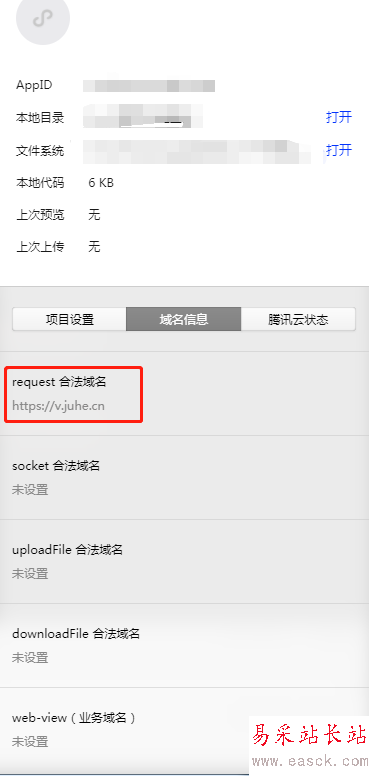getPostInfo: function (nu, callBack) { wx.request({ url: 'https://v.juhe.cn/postcode/query', data: { postcode: nu, key: '*****'//key需要自己去官網申請 }, method: 'GET', success: function (res) { callBack(res) } }) }很多教程說按照以上方式調用即可。但是當我們在程序中實際調用以上程序時,就會報錯說:"https://v.juhe.cn不在合法域名列表中,請參考文檔 https://mp.weixin.qq.com/debug/....." 。初學者此時就要懵逼了。別人在教程里就可以正常運行,到自己這就不行了。其實是沒有告訴你在調用第三方數據時,必須要先設置合法域名。現在你可以在微信開發者工具里,點擊詳情->域名信息。這里有一個request合法域名。默認是未設置狀態。怎么將第三方域名設置為合法域名呢?