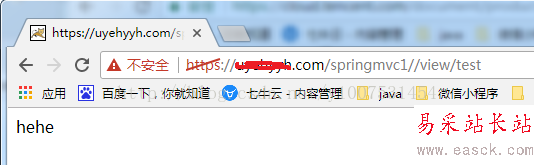 @RequestMapping("/test") @ResponseBody public String test(){ return "hehe"; }3、通過騰訊云注冊的域名訪問相應Servlet,Http請求將自動轉入Https請求