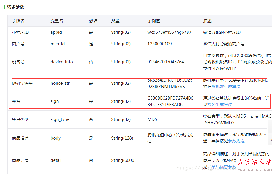而在這些參數中,有兩個參數很眼熟,在第一步發起微信請求時也有這兩個參數,后發現這里的隨機字符串就是調起支付時用到的隨機字符串,而且是必須一致,那么簽名呢,要是也認為一樣就完全調溝里了,這里的簽名我稱為一次簽名,因為支付的時候要進行第二次簽名。簽名生成算法有講解,多讀幾遍就明白了,我建議讀個幾十遍。