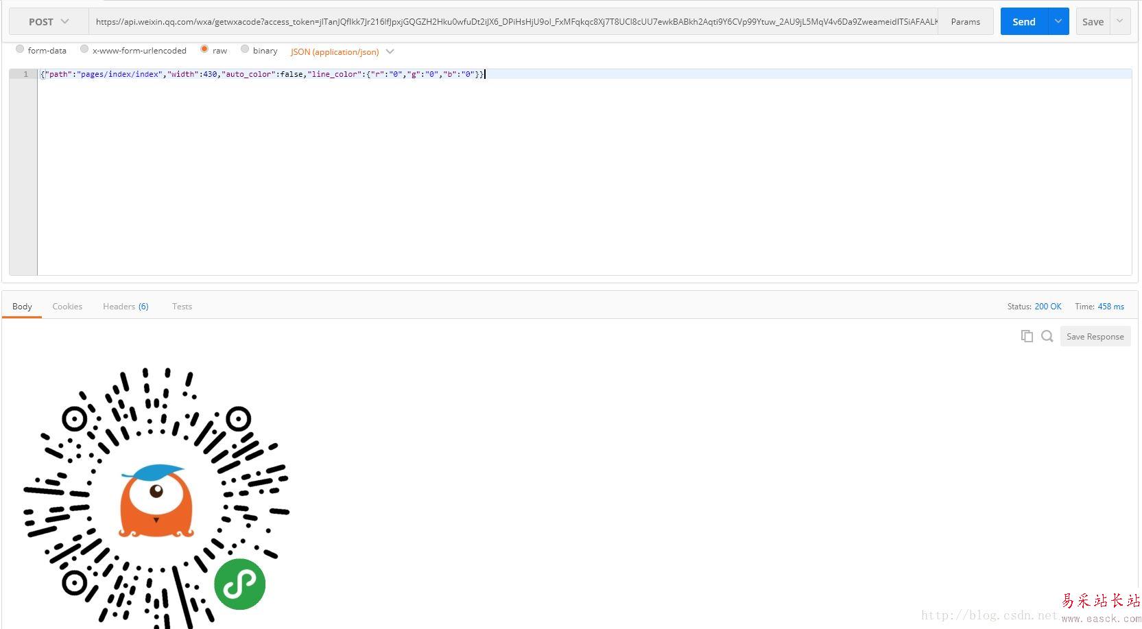 接口地址:https://api.weixin.qq.com/wxa/getwxacode?access_token=ACCESS_TOKEN