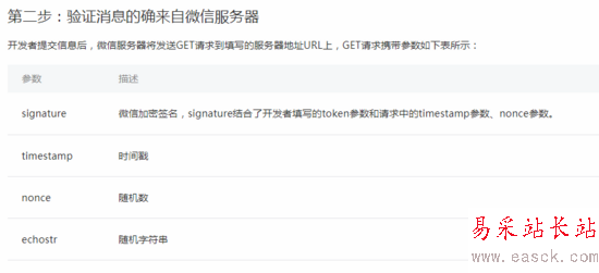 開發(fā)者通過檢驗 signature 對請求進行校驗(下面有校驗方式)。若確認此次 GET 請求來自微信服務(wù)器,請原樣返回 echostr 參數(shù)內(nèi)容,則接入生效,成為開發(fā)者成功,否則接入失敗。加密/校驗流程如下: