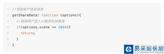 實際操作場景中還存在一個問題,這種方法只適用于分享到群聊,如果分享給個人用戶,個人用戶依然是可以通過長按小程序卡片來轉發的,這就需要我們再做進一步檢測,檢測用戶進入小程序的場景。