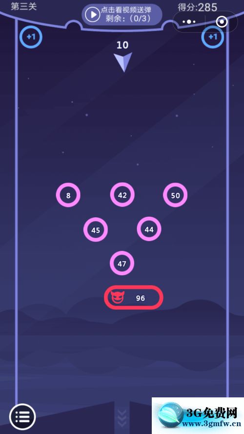 然后點(diǎn)擊上方的三個小視頻廣告,看完后會增加三個球,這樣開局射擊才能有一定的優(yōu)勢。
