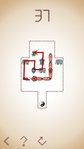 首先玩家需要吃掉右邊的老鼠,然后繞一圈上去觸碰右邊的青蛙;接著吃掉左邊所有的動(dòng)物,去觸碰左邊的青蛙;吃掉右邊的大象,觸碰太極圖,過關(guān)!