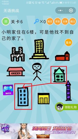第6關問題:小明家住在6樓可是他找不到自己的家了